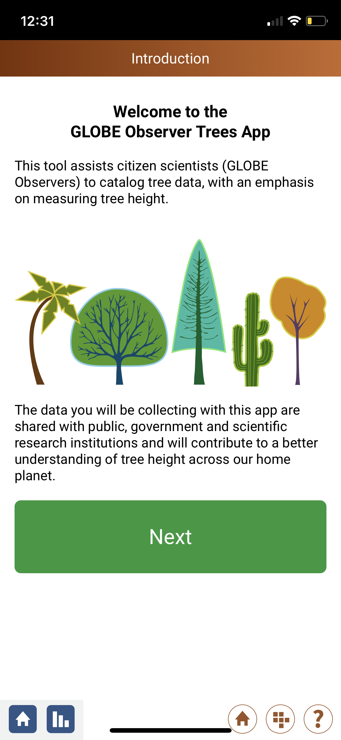 Contribute some information about your local environment – it might be as simple as photos or measurements of the trees outside, or the weather – to help with the global observations of the change of the world through the NASA โGLOBE Observerโ. They are also guided how to use mathematics to measure the height of a tree based on their own height and some other measurements they can do from the ground.