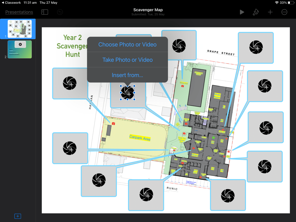 - If you are using a keynote deck and creating templates that require students to upload images or videos, I suggest using a ‘place holder’!