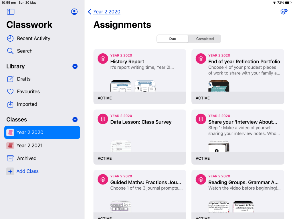 Classwork app is a platform that allows me to assign the Keynote slide decks I have created, to my students, as a task. I can choose to assign tasks to my whole class, a single student, or a group of students for differentiation. For each task I am able to set a due date, write a title and description (oftentimes instructions); and for students to be more independent I am even able to include a video of myself giving instructions / modelling an example of how to complete the task.